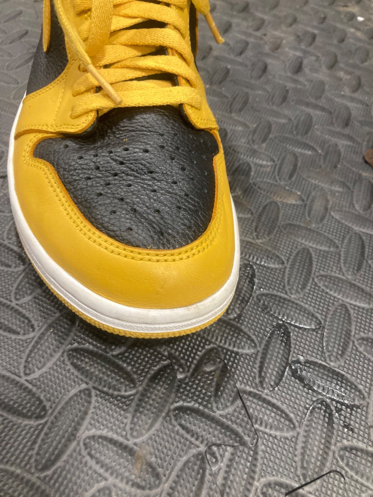The Nike Air Jordan 1 Retro OG High Pollen 555088-701 Men's Size 10 is a stylish and comfortable sneaker perfect for casual occasions during the summer, fall, and spring seasons. Featuring a high-top silhouette and lace-up closure, these shoes offer a retro theme with a vibrant yellow colorway. Made with leather upper material and a foam insole, these athletic shoes provide quality and performance for basketball activities. The Jordan brand and iconic Air Jordan product line ensure that these shoes are a sought-after addition to any sneaker collection.