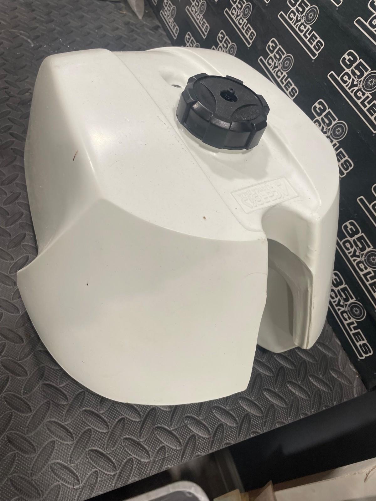 The Acerbis Italian oversized Yamaha gas tank fuel petrol XT500 is a vintage part made of aluminum, featuring a silver color and custom painted finish. This fuel tank is designed for dual sport motorcycles and off-road motorcycles, with a vintage OEM look. Made with performance in mind, this Yamaha-branded tank includes a fuel tank cap and is a genuine representation of Italian craftsmanship. Ideal for collectors and enthusiasts looking for a unique and stylish addition to their motorcycle, this fuel tank is a must-have for those seeking authenticity and quality in their vehicle's parts and accessories.